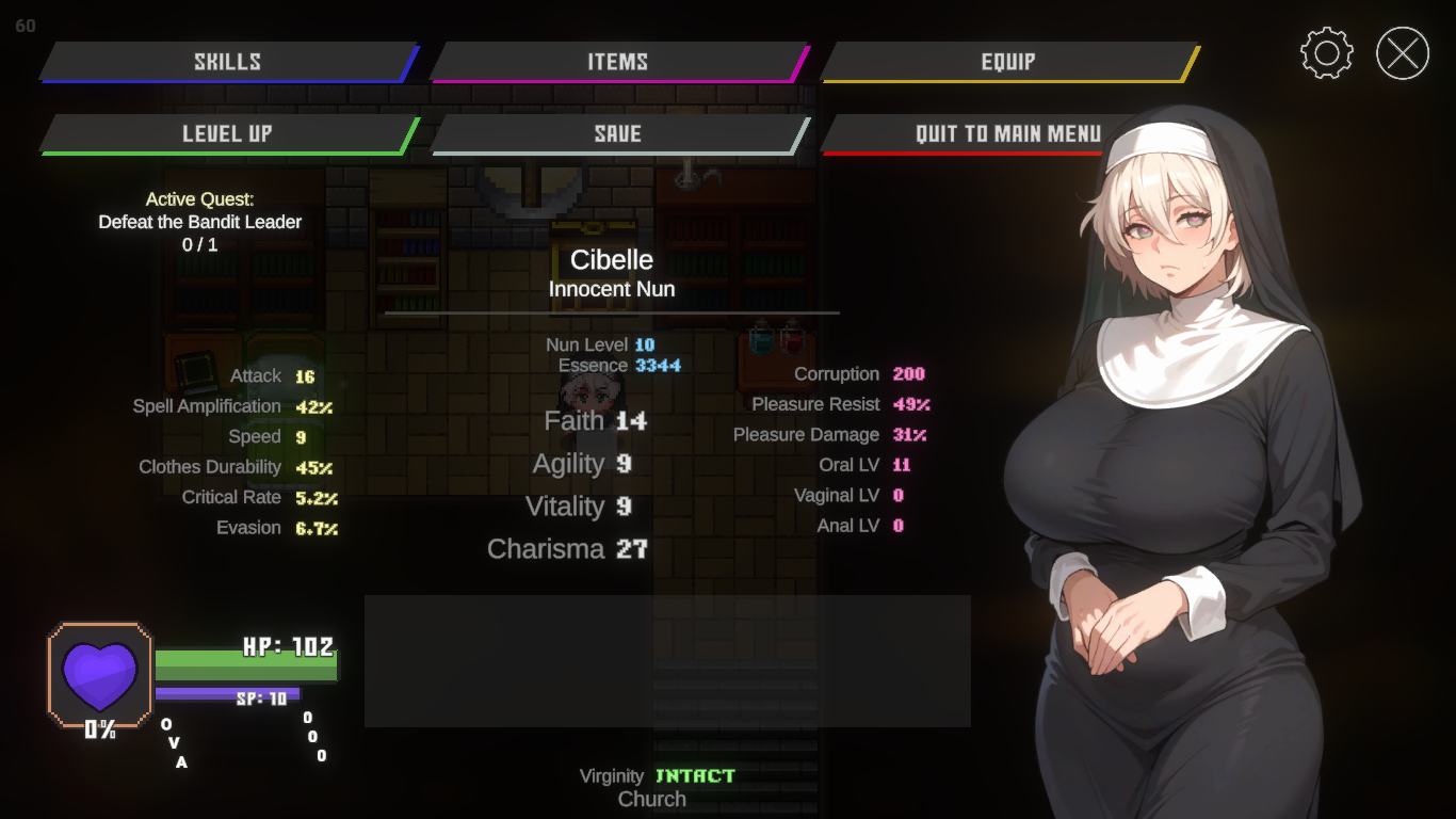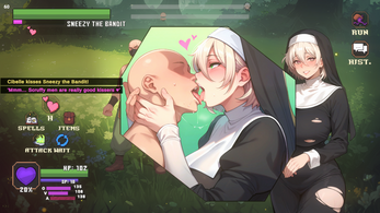 A nun recently arriving at a church in the middle of a village whose inhabitants have been cursed with perpetual erections, she agrees to help them in their plight. How she interprets the word 'help' will be up to you.